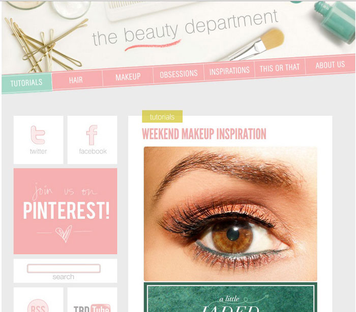 The Beauty Department. Lauren, Kristin y Amy son las propietarias del sitio, encontrarás una fresca manera de expresar la fascinación por el maquillaje y cabello. Te recomendamos el tutorial para hacer diseños en las uñas.