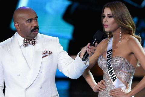 Miss Colombia y Steve Harvey juntos en la televisión