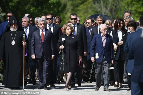 George Clooney participó el domingo en una ceremonia para conmemorar los 101 años de la masacre de 1,5 millones de armenios a manos de los turcos otomanos.