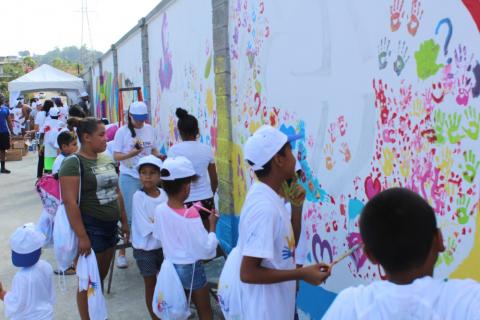 Durante tres días y con más de 90 niños participantes, la comunidad de Las Palmitas, en el sector de Las Colinas de Santa Marta, tuvo la oportunidad de plasmar con pintura sus emociones y sentimientos sobre el muro que fue reconstruido luego de que fuera vandalizado.